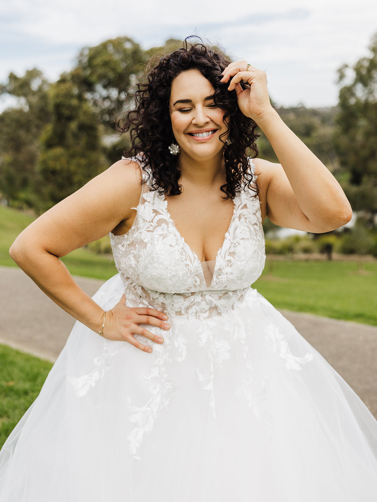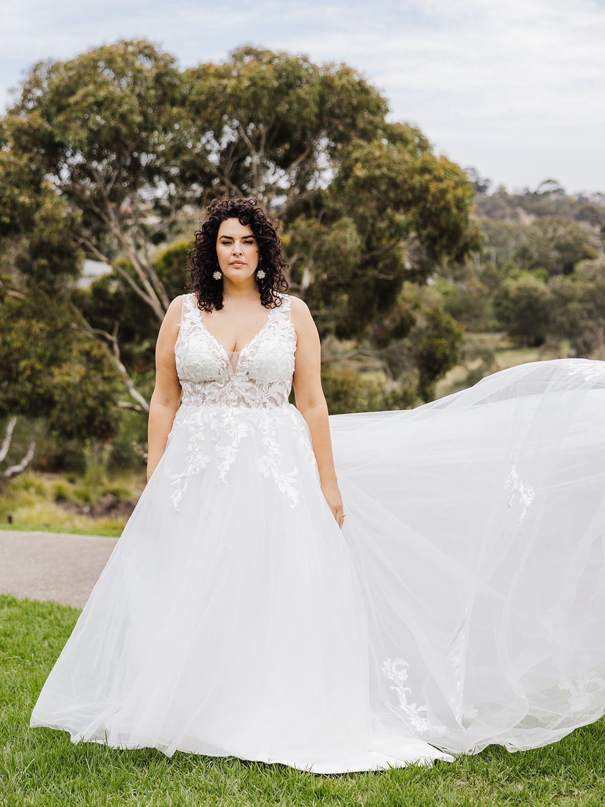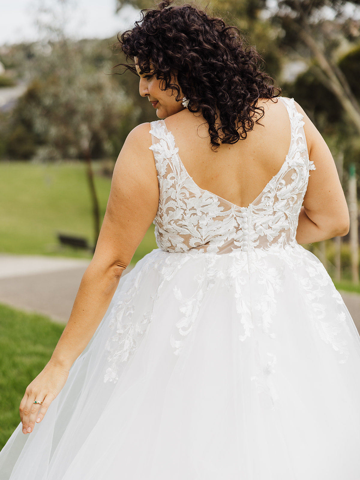 EVIE is layers of gorgeous soft tulle over a fully lined satin skirt and finished with stunning waterfall lace applique from the waist and lining the hem. Her gorgeous structured and defined hem creates a flutter effect when you walk.