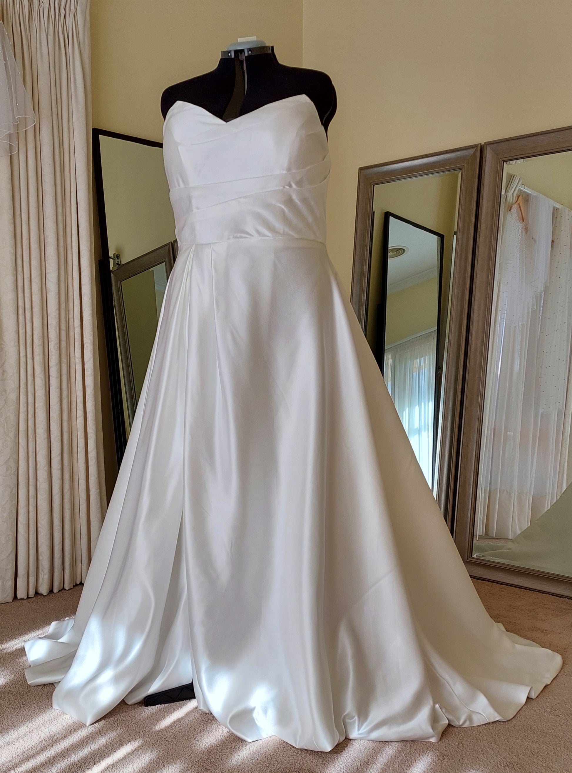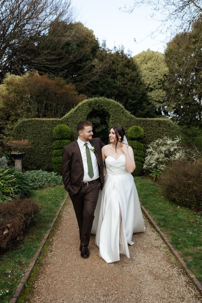 Her A-line silhouette is accompanied with a full train and Ruby has bust shaping and support and a zip fastening. Ruby has the option of pockets and/or a corset (lace up) fastening!