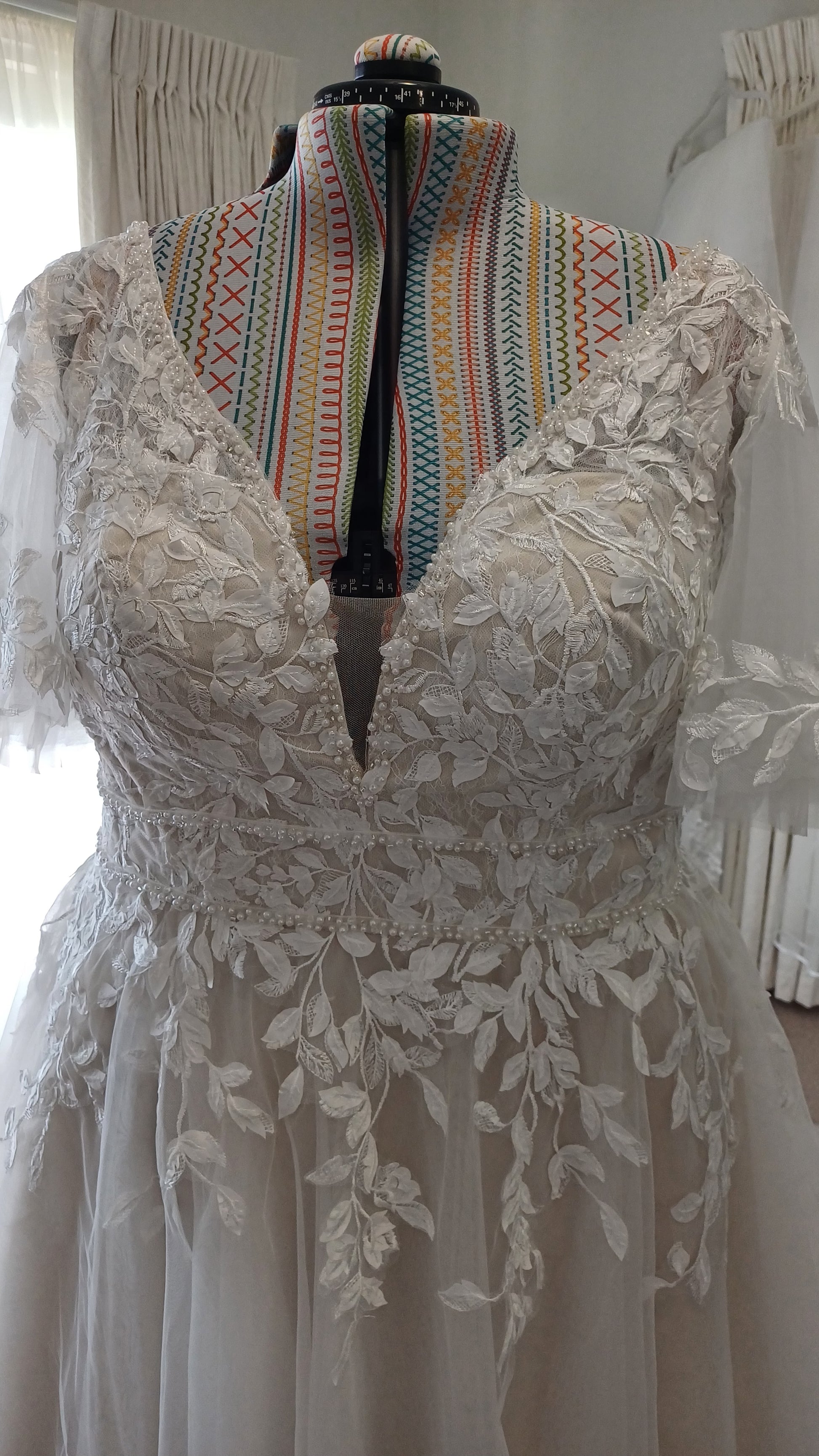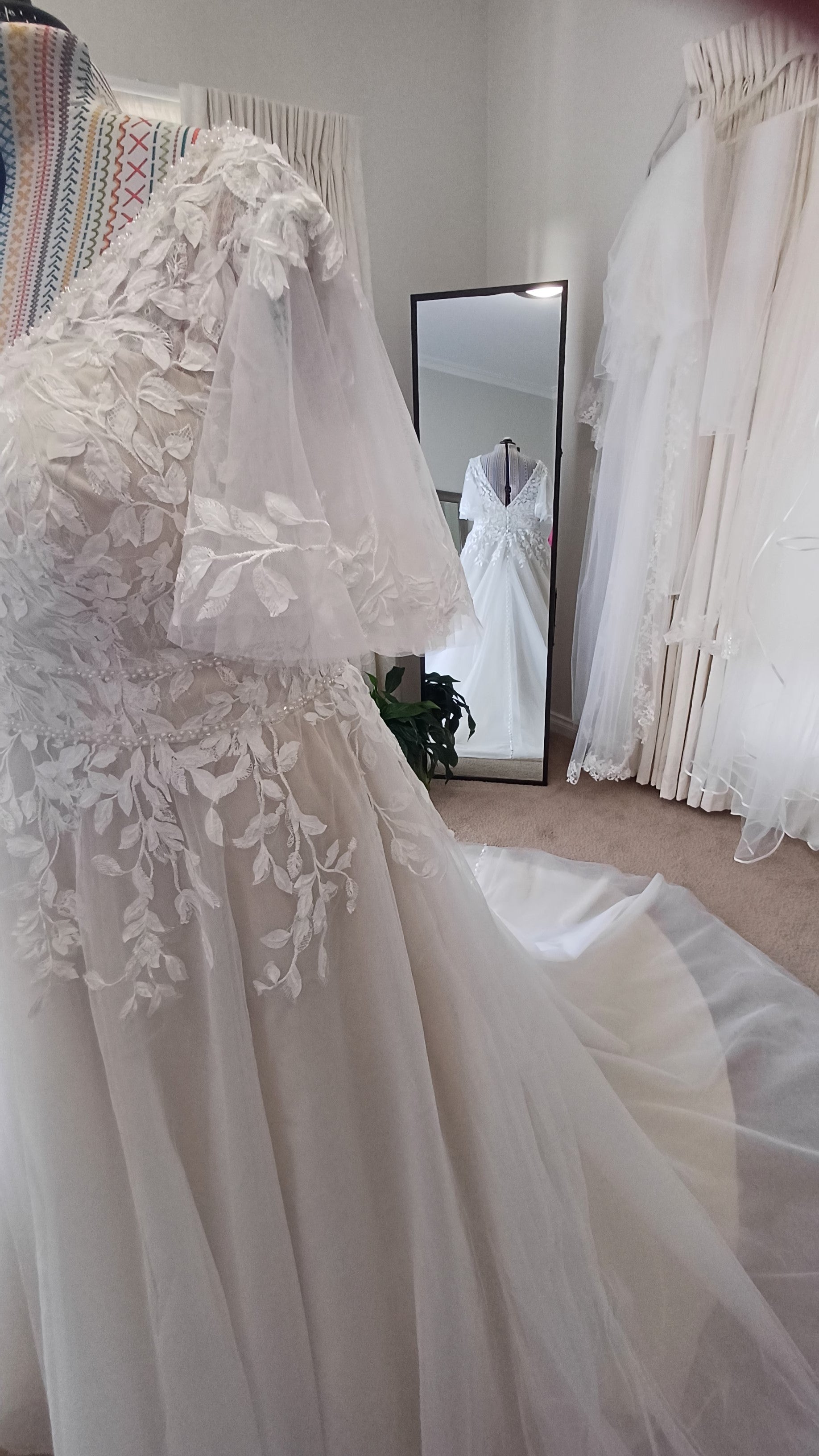 I Do Dresses currently have sample of size AU22 available for immediate shipment if you find yourself in need of a wedding dress in less than a week!